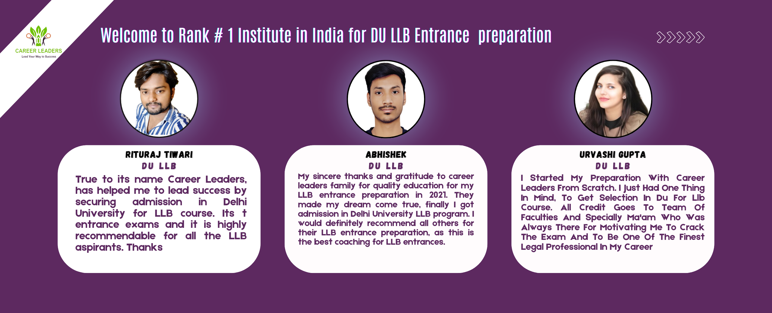 Are you looking for the best DU LLB coaching in India to help you crack the prestigious Delhi University law entrance? Look no further, for Career Leaders stand tall as one of the most trusted and result-oriented institutes for DU LLB preparation. With expert faculty, live interactive sessions, and in-depth study material, join Career Leaders to ensure that you don’t just prepare but excel.